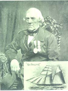 Typical of these Captains and Master Mariners was James Dickson who was born at Innerleithen in 1785. Although the son of a farmer he had from early boyhood wanted to go to sea. Therefore at the age of thirteen he ran away and joined up. Twice in his life he was press ganged of a merchant ship and forced into the Royal Navy in which he served eleven years and saw a great deal of action including the Battle of Trafalgar in 1805 and the taking of Guadaloupe in 1810. Medals were presented to all those who took part in the Battle of Trafalgar and a few years later in 1848 Queen Victoria presented medals to the survivors. On the anniversary of Trafalgar he wore his medals and with five other veterans of the battle who lived in the town met annually on that day to “fight their battles o’er again” One by one they died off and the old captain felt a intense sadness with their passing until he was left the sole survivor.