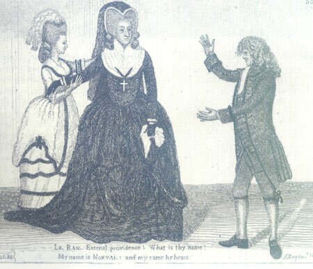 The above scene from the “Douglas” from John Kay’s engraving shows Sarah Siddons as Lady Randolph at the Theatre Royal Edinburgh. The “Douglas” was written by John Home, a son of Alexander Home who was Town Clerk of Leith, and was born in Quality Street (now Maritime Street) Leith in 1722 and buried at South Leith Churchyard in 1808. Throughout his life he was friend with many of the people who created the Scottish Enlightment of the 18th century